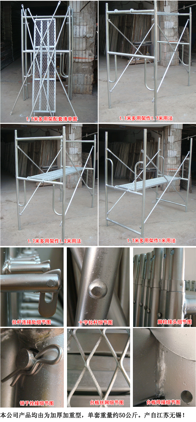 請注意,在使用多功能腳手架時,必須正確佩戴安全帽、防滑手套,穿防滑鞋,并帶上安全工具袋,確保施工安全。此外,多功能腳手架的價格相對較高,更適合大型項目使用。